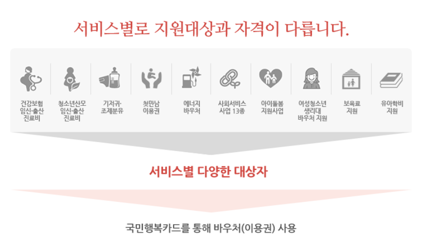 이처럼 국민행복카드는 국가에서 지원하는 다양한 복지 혜택을 받을 수 있는 카드예요. 다음으로는 국민행복카드의 발급 대상에 대해 알아볼게요!