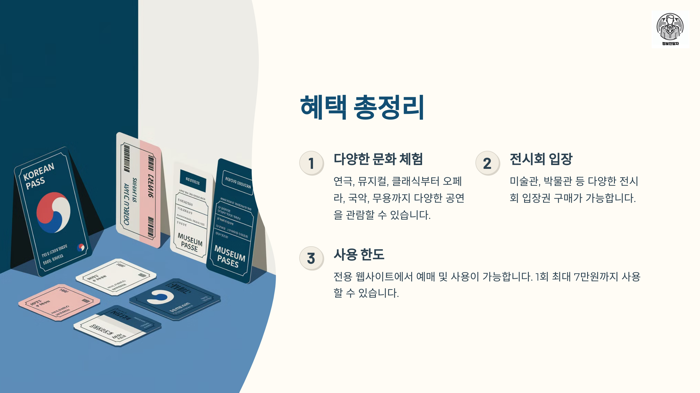 내가 생각했을 때, 이런 혜택을 놓치지 않고 알차게 활용하면 정말 득템한 기분일 것 같아요! 평소에 가보고 싶었던 공연이나 전시가 있다면 이 기회를 꼭 활용해 보세요.