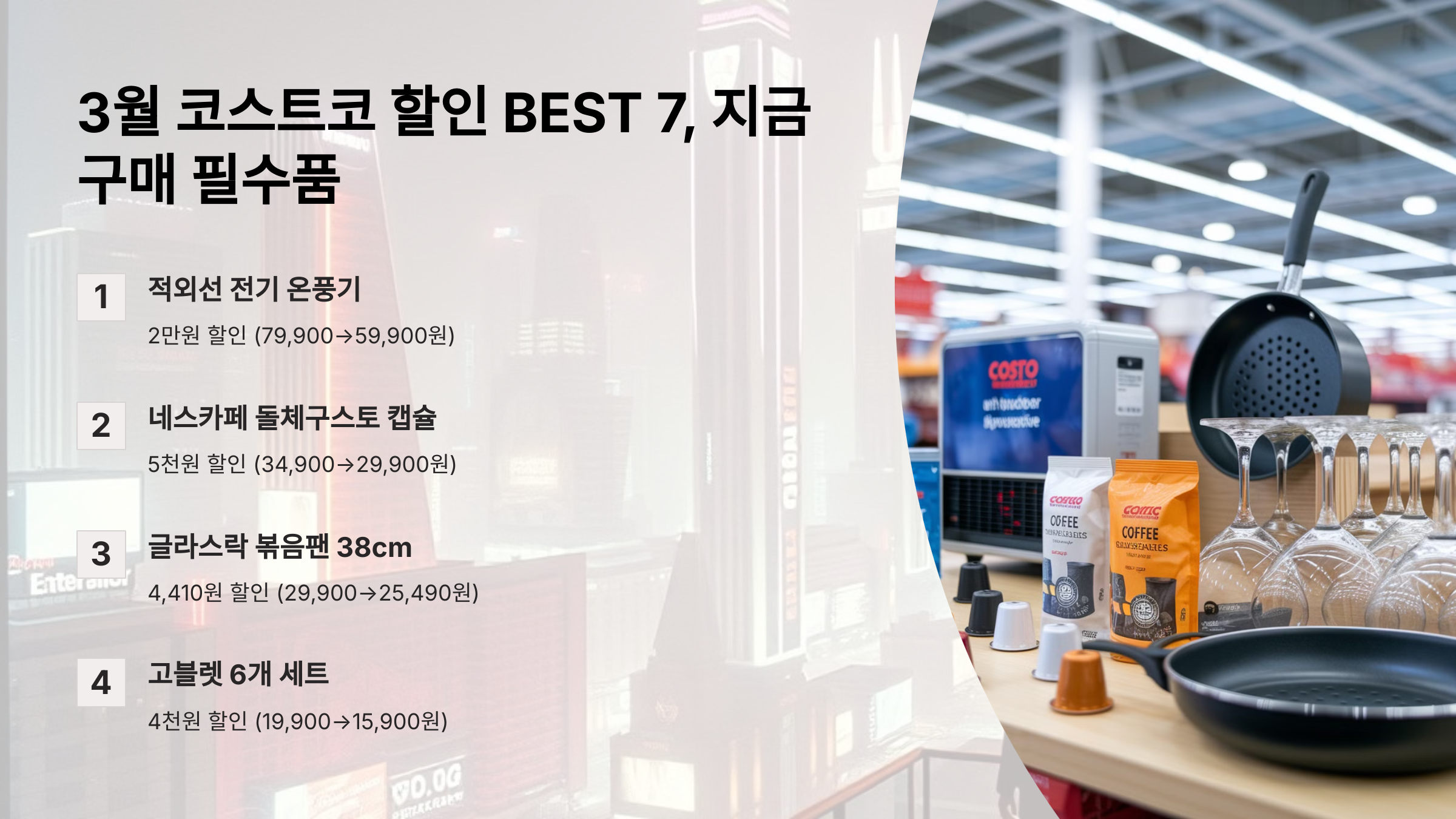 코스트코 3월 할인 제품 중에서 놓치면 후회할 BEST 7을 골라봤어요! 가격 대비 만족도가 높은 제품들만 선정했으니, 쇼핑 전에 꼭 참고하세요.