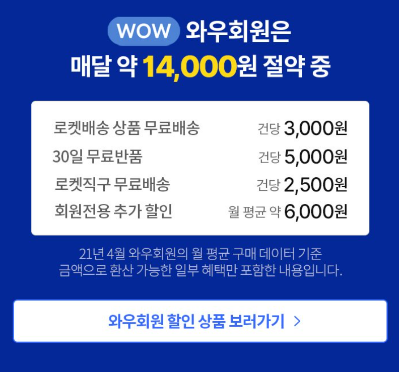 뿐만 아니라, 특정 브랜드와 제휴해서 와우 회원 전용 특가도 종종 열리는데, 이때 잘 활용하면 꽤 많은 금액을 절약할 수 있어요.