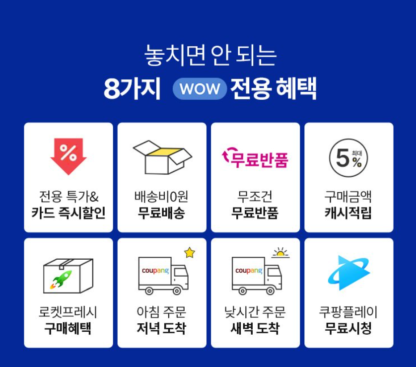 | 배송비 | 무료 (와우 회원) | 보통 3,000원~5,000원 |