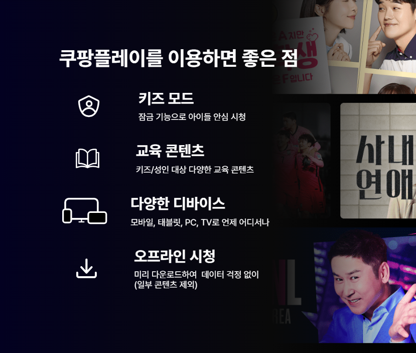 쿠팡플레이는 넷플릭스나 디즈니+처럼 영화를 보고 드라마를 감상할 수 있는 OTT 서비스예요. 스포츠 중계, 특히 프리미어리그 생중계를 볼 수 있어서 축구 팬들에게 인기가 많아요.