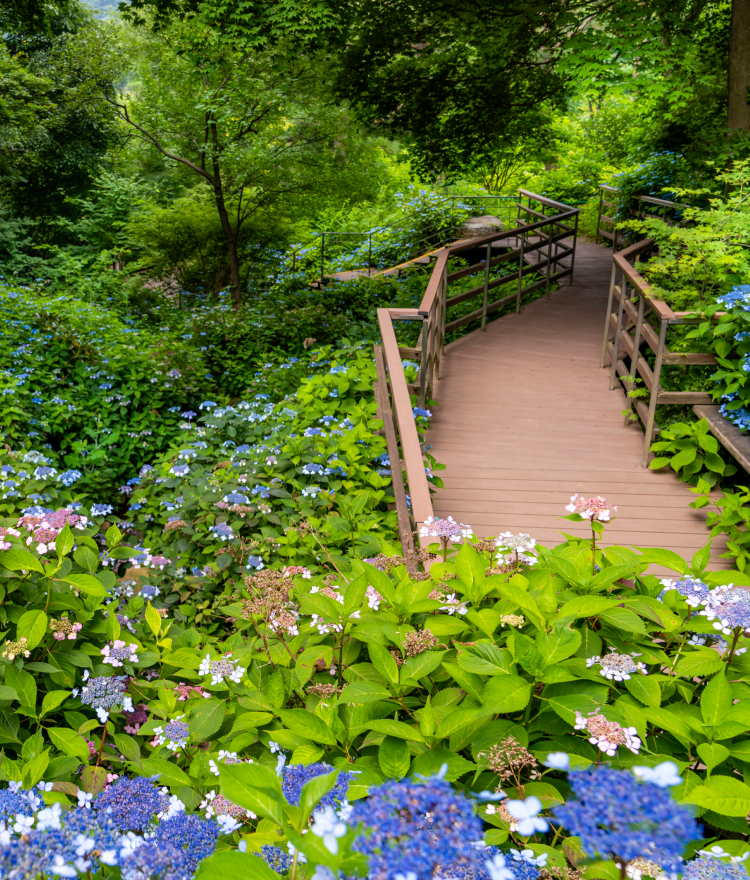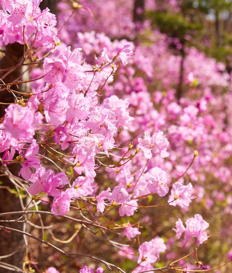 5월 초가 되면 철쭉과 진달래가 산을 물들이기 시작해요. 이 시기에는 화담숲이 핑크빛으로 변하면서 또 다른 매력을 선사한답니다. 철쭉은 숲 전체를 뒤덮기 때문에 꽃길을 따라 걷는 재미가 있어요.